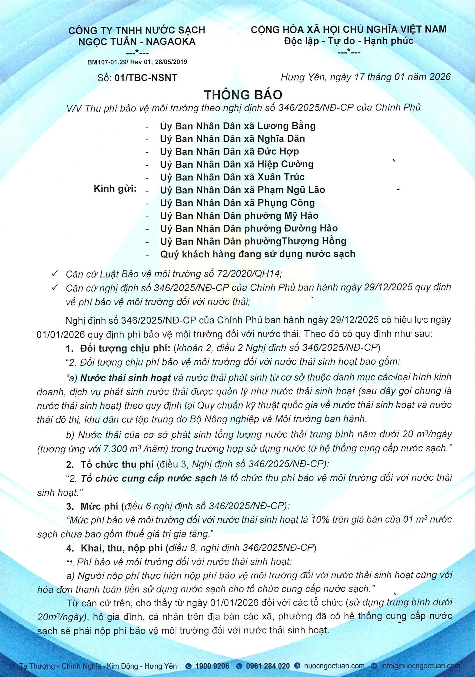 Lịch thanh toán tiền nước từ kỳ tháng 10/2025