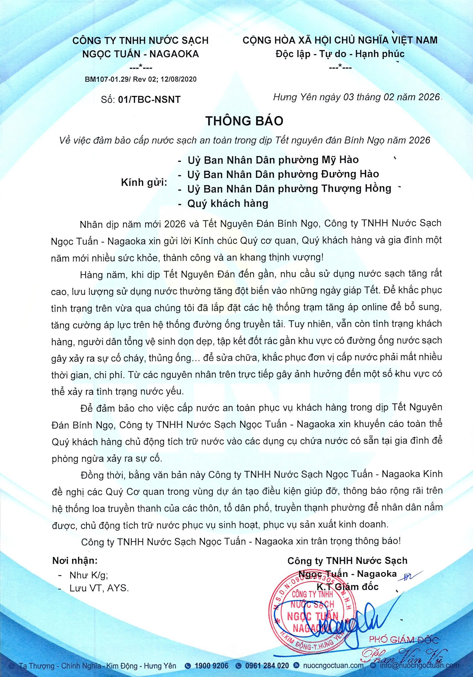 Cấp nước sạch an toàn trong dịp tết nguyên đán Bính Ngọ