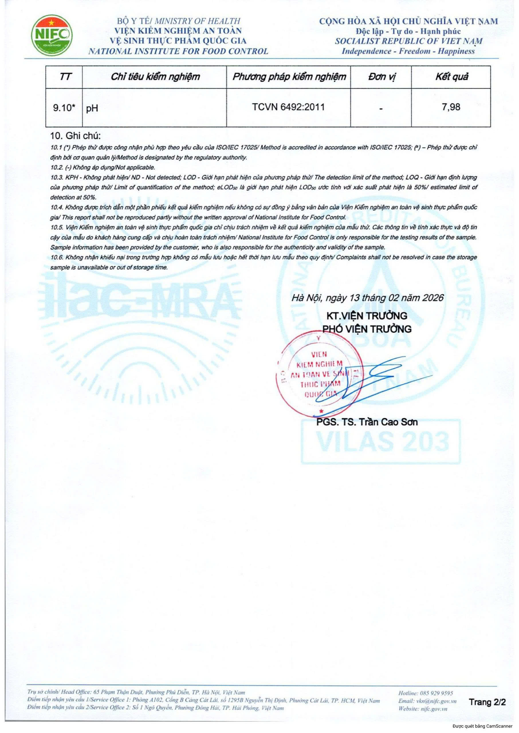 Kết quả nội kiểm mẫu nước tháng 12/2025