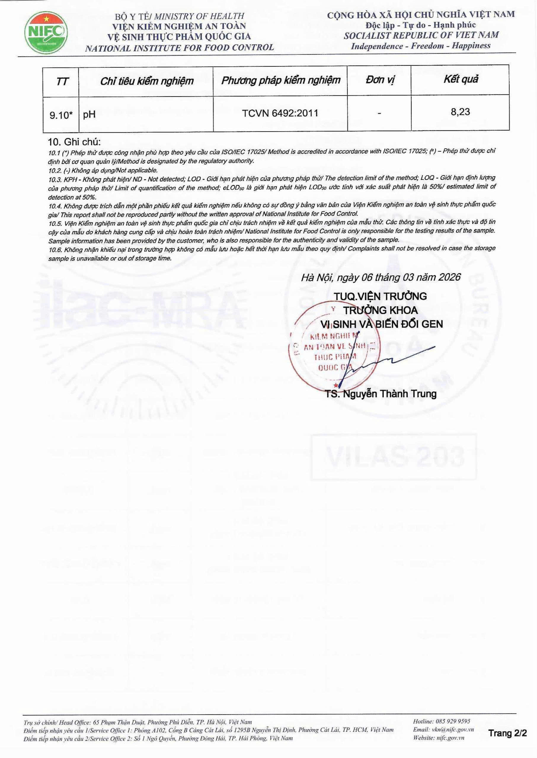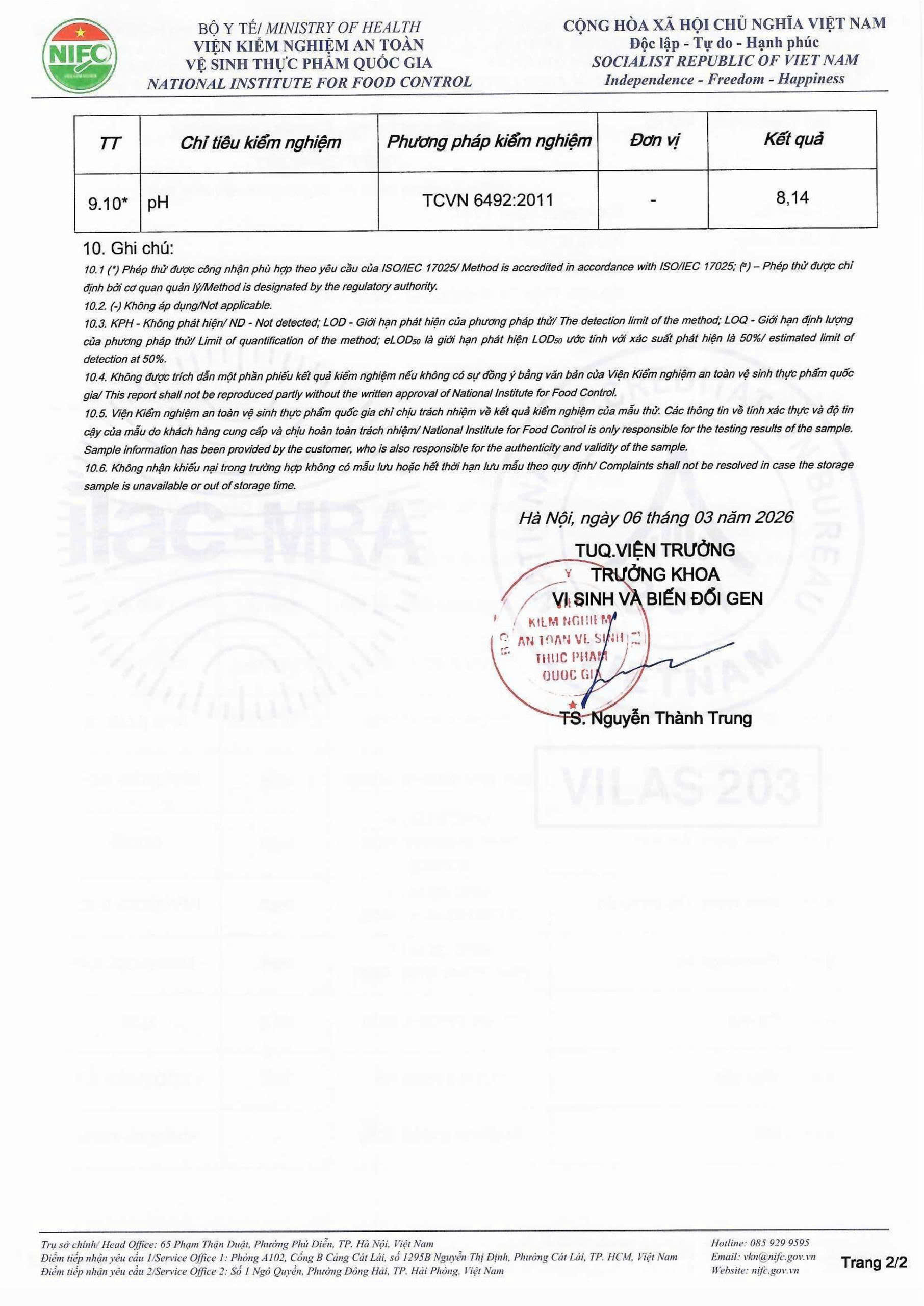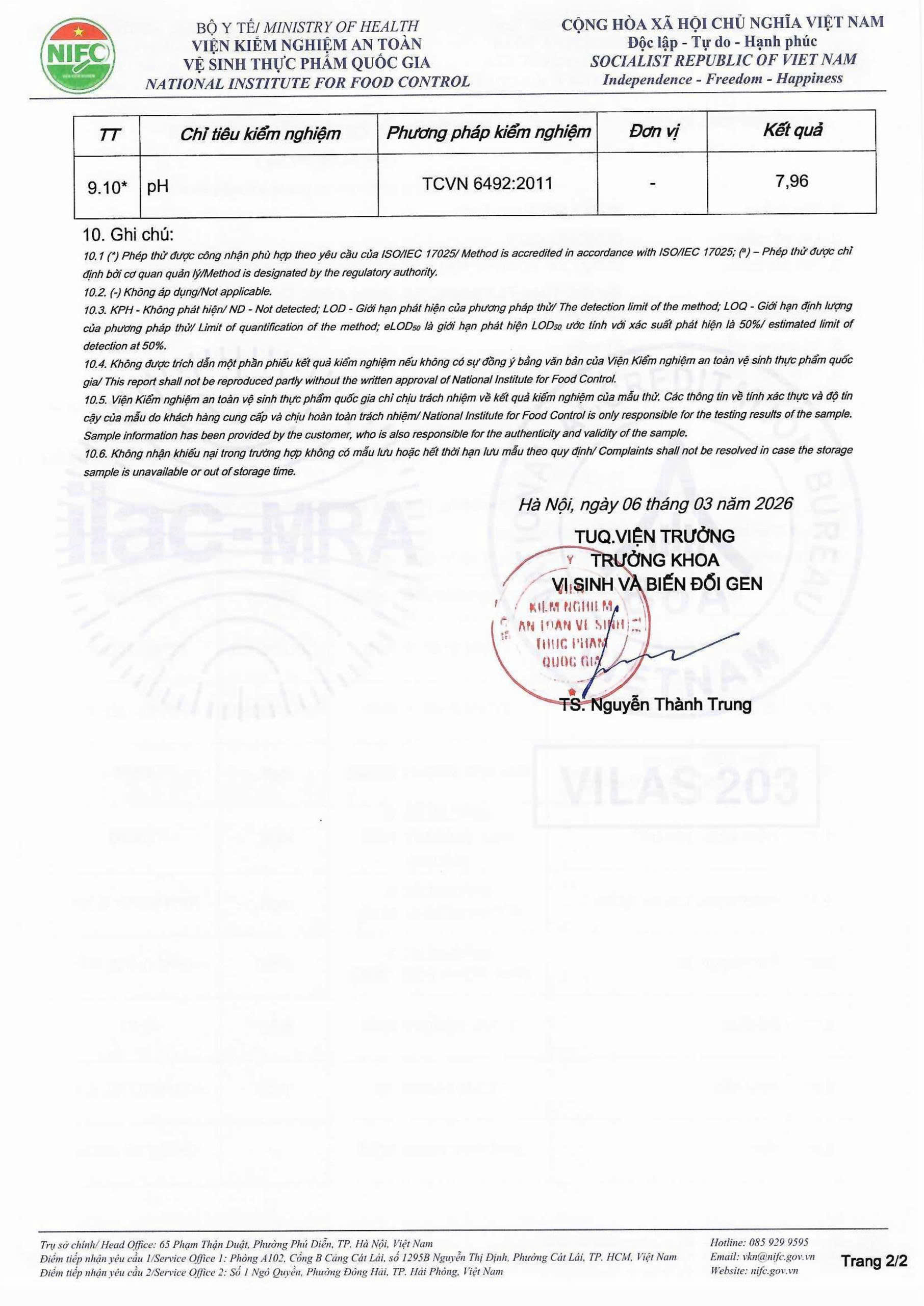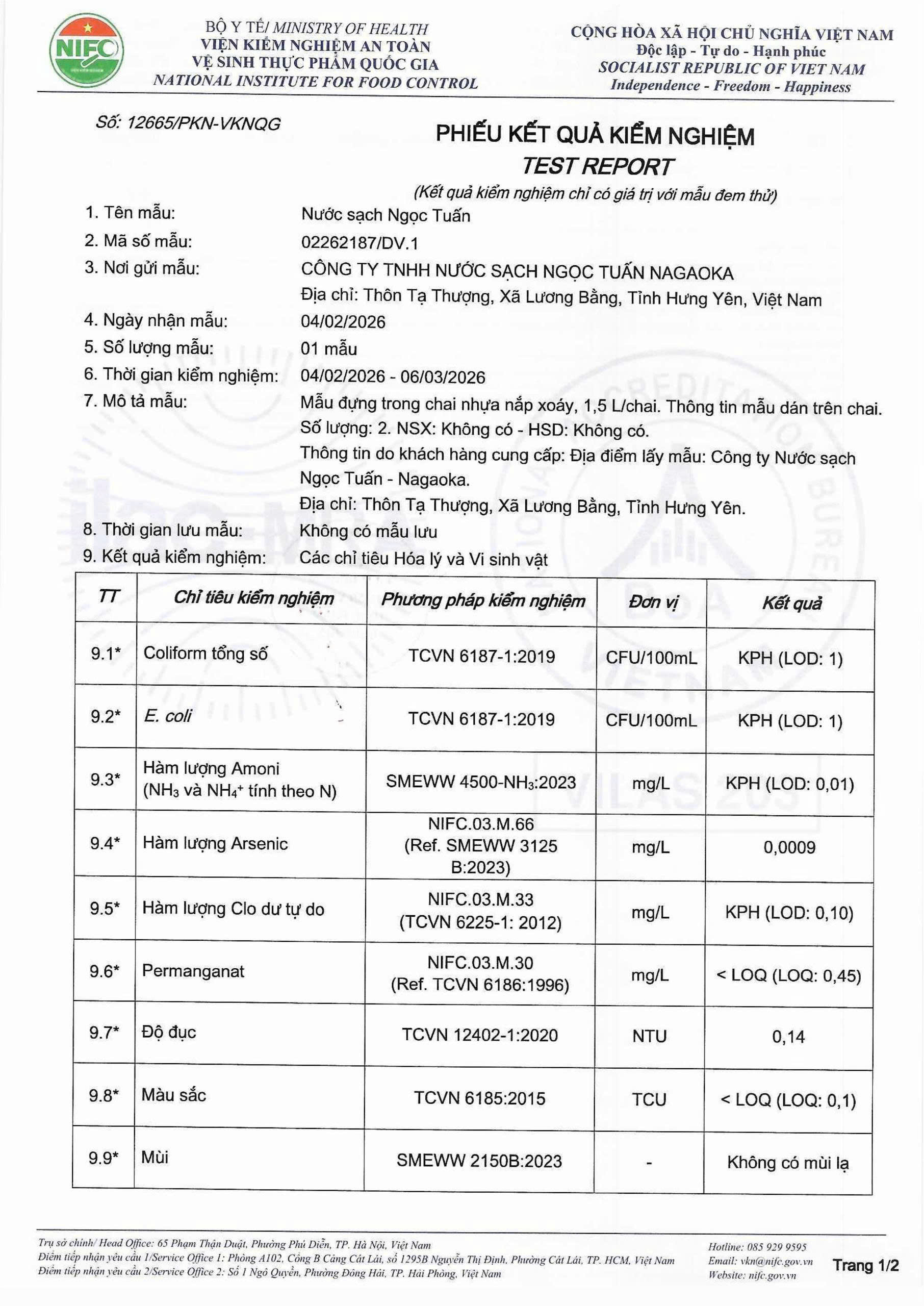 Kết quả nội kiểm mẫu nước tháng 02/2026